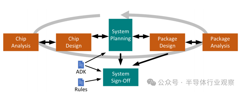 如果系统签核直接涵盖芯片、中介层和封装的所有设计输入,那将是最理想的。但硅片和封装的尺寸相差三个数量级,硅片以纳米为单位,而封装以微米(或更大)为单位。仅使用一种工具在两种尺度上进行验证将极其耗时。更常见的情况是,芯片设计数据将由系统规划工具提取并输入到签核引擎。这就是为什么上述封装设计模块直接输入签核模块,而芯片设计模块则不输入的原因。