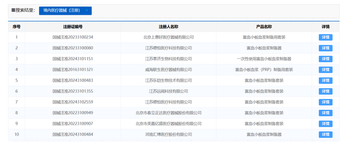 目前得到获批的部分同类产品。图片来源:国家药监局官网
