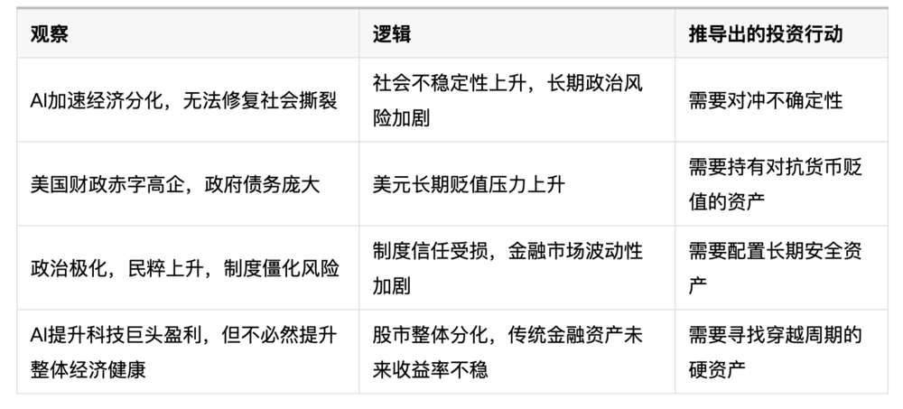 3、应对策略是——多元资产配置,增加实物资产(如黄金、有现金流的跨周期资产)或抗通胀资产比例。
