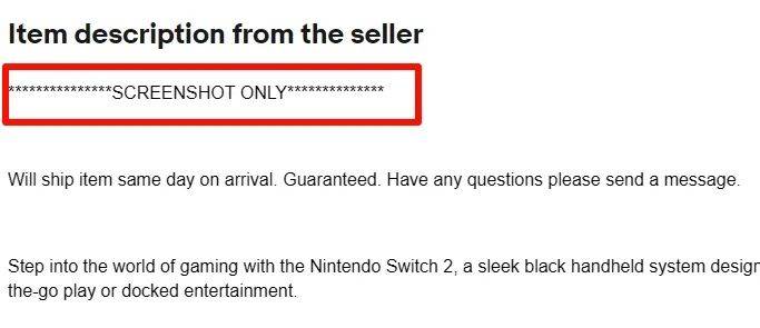 但一次,在这次Switch2截图卖高价的风潮出现后,作为平台方的eBay很快表态这种涉嫌虚假售卖的行为违反了他们的用户协议,可能会让卖家付出被封号的代价。