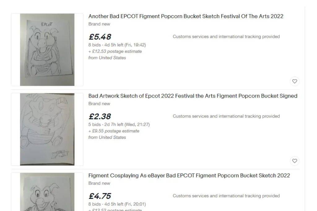 奥兰多迪士尼在2022年推出一款人气角色Figment的爆米花桶时,也遇到了一桶难求的火爆场面。原价25美元的爆米花,在eBay上一度被炒到了600美元的夸张价格。