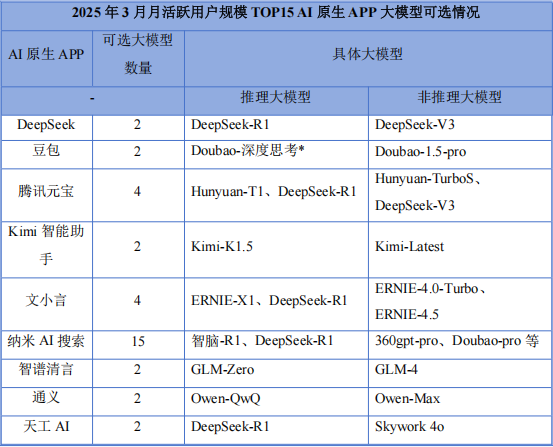 表格来源:QuestMobile AI产业研究院2025年4月根据公开资料整理