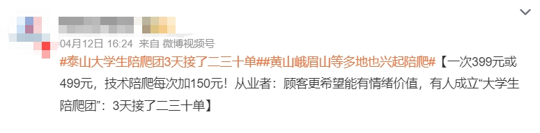 一些年轻人尝试脱离社会既定的“轨道”,选择出售的闲暇时间及专业知识,为陌生人提供点对点或是点对面的陪伴服务,陪爬山、陪逛街、陪诊、陪游、陪拍照等等。
