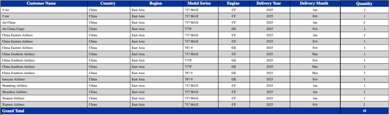 按计划,波音在2025年将向中国交付约50架飞机。波音官网信息显示,截至3月31日,波音已向中国交付18架飞机。