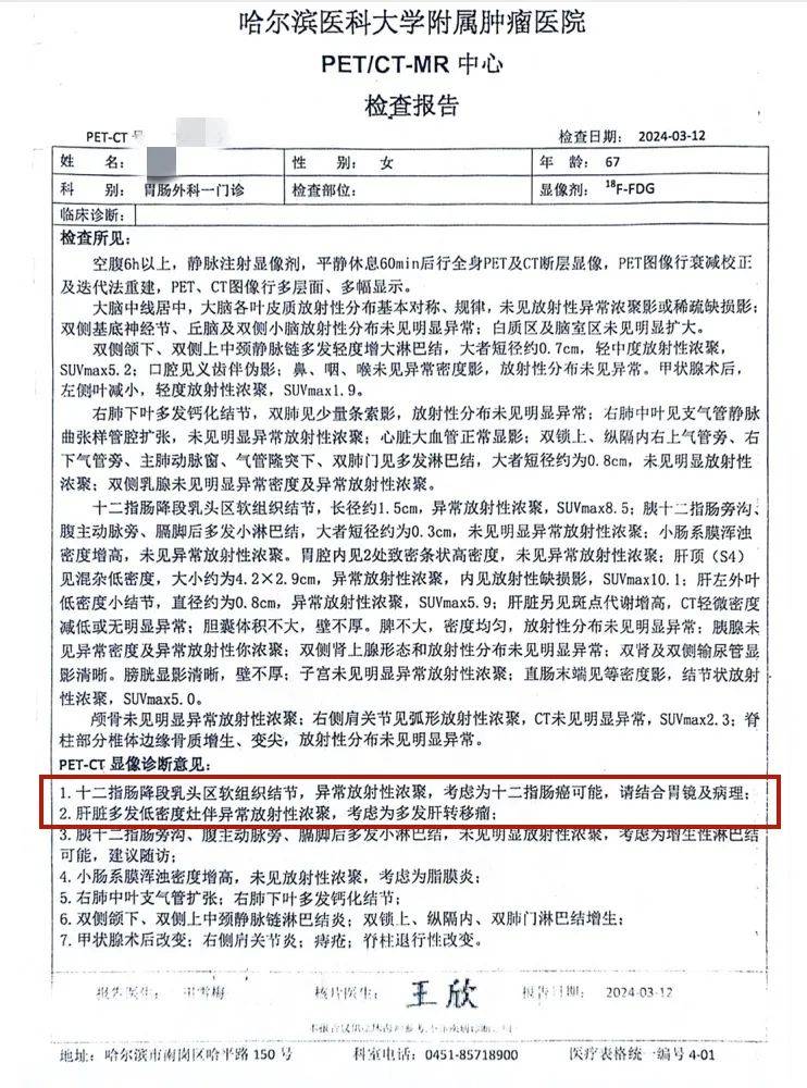 但仅隔一年时间,2024 年 3 月的体检小高母亲即被确诊十二指肠腺癌伴多发肝转移,初始评估无手术机会。