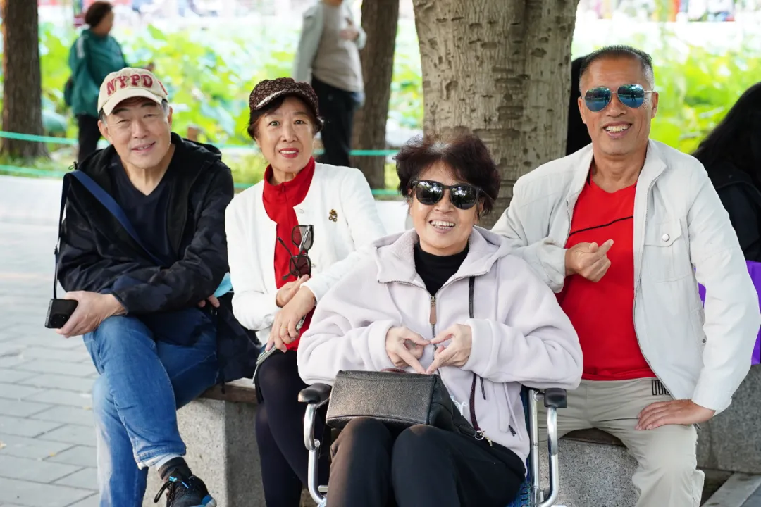 24年国庆期间带管出院与好友相聚在北京公园,坐着轮椅,斜挎包里装着引流管的气鼓