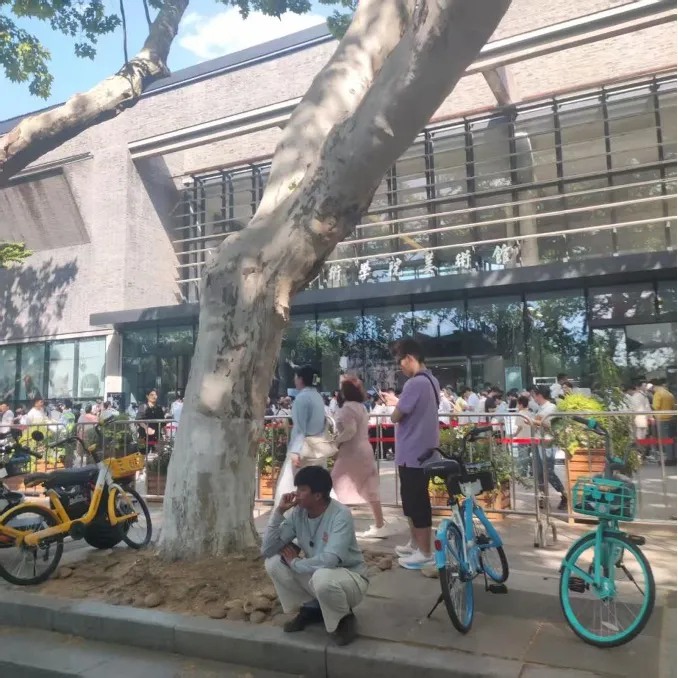 财联社记者于5月1日下午2点左右抵达位于西湖边的中国美院,只见门前大排长龙,单张售价60元的门票很快于当天16点前售罄。