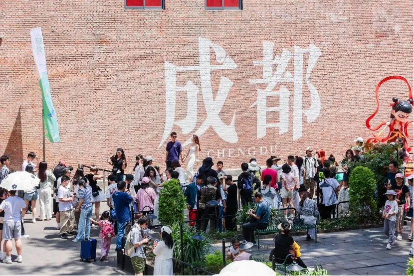 “五一”首日,标志性打卡点“成都墙”吸引众多游客前来拍照(东郊记忆供图)