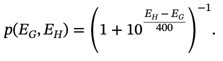 Elo分数为EG的Guard对Elo分数为EH的Houdini的预期胜率由标准Elo公式给出。