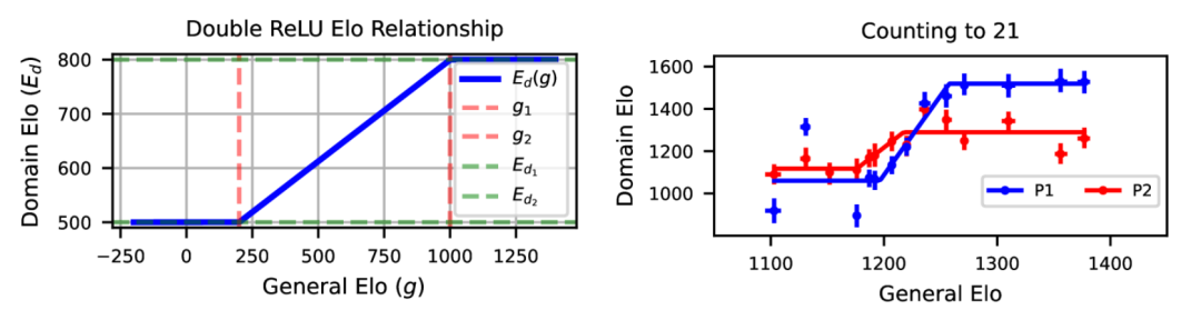 研究认为,在任何游戏中,通用智能(General Elo)和领域智能(Domain Elo)之间的关系有三个重要阶段,如上图所示: