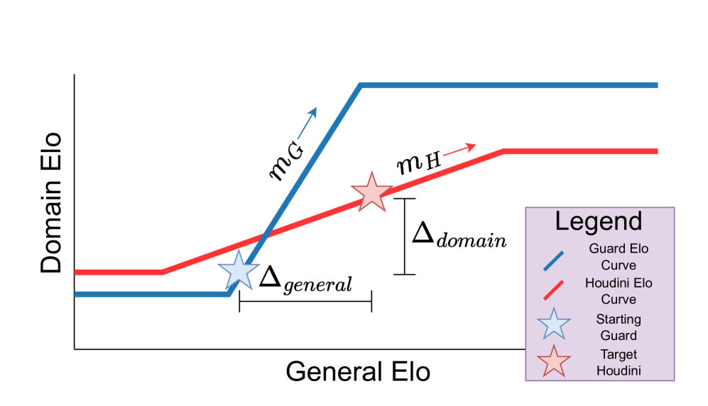 每个模型被分配两个独立的Elo分数:一个分数EG用于作为Guard时的表现,另一个分数EH用于作为Houdini时的表现。