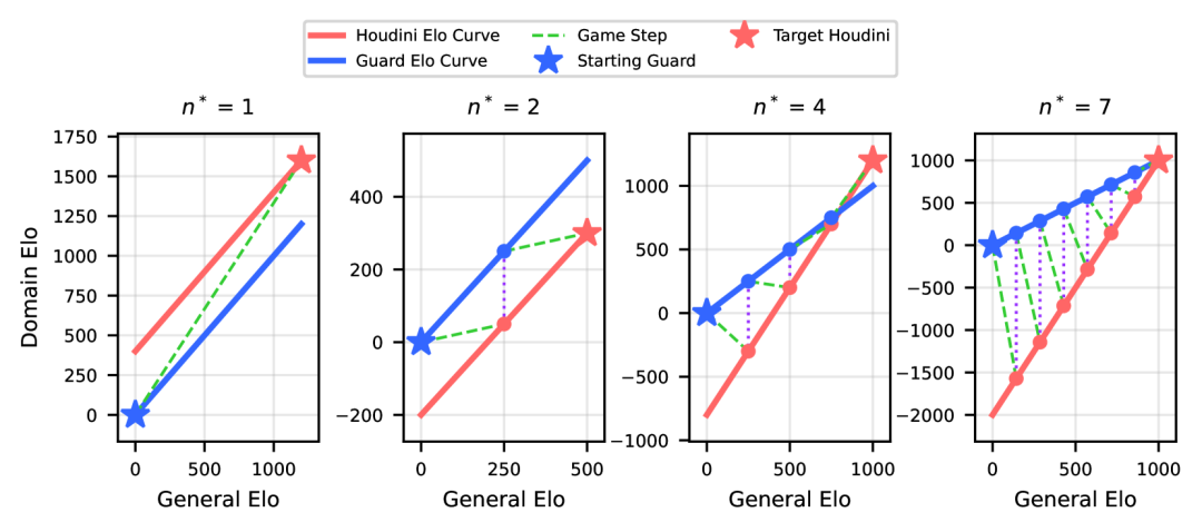 这些NSO策略可以可视化为一个球在Houdini Elo曲线和Guard Elo曲线之间来回弹跳。