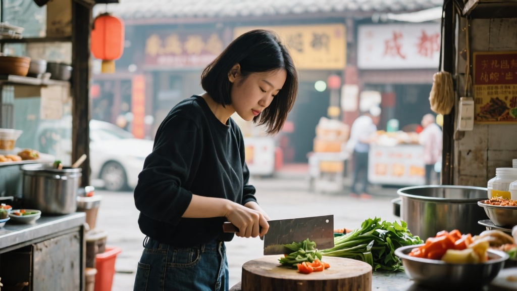 在热气腾腾的厨房里,她娴熟地洗菜、切配、熬咖喱汁……她的身份兼具了掌柜和厨子两种,而下厨是她每天的日常。