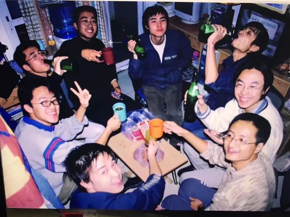 大学时代的六神磊磊——右边仰脖吹瓶的那一个