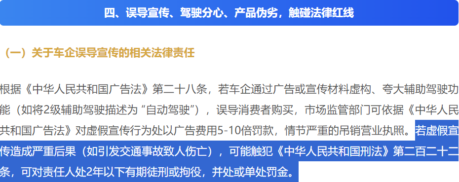 公安部的道路交通安全研究中心也在自家公众号上发了一篇推文,强调车企不能对智驾进行虚假宣传,如果因此造成了严重的后果,责任人就得进去蹲局子,措辞相当狠了。