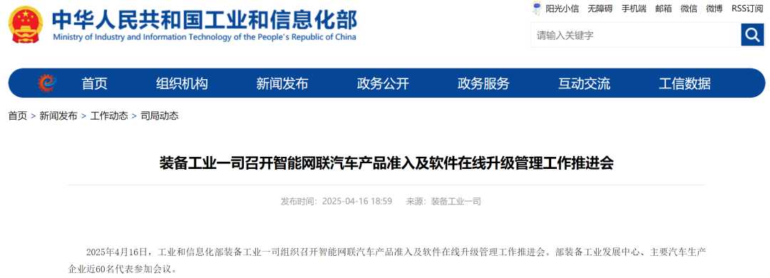 装备工业一司召开智能网联汽车产品准入及软件在线升级管理工作推进会