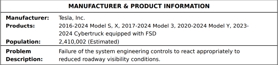 这个美国也有先例,比如特斯拉的 FSD,在当时发布 V12 端到端版本的时候就受到了美国国家公路交通安全管理局的特殊照顾。2024 年初 FSD V12 版本推送,2024 年 10 月 NHTSA 就启动了一项针对 FSD 在低能见度环境下能力的调查,涉及 240 万台车。