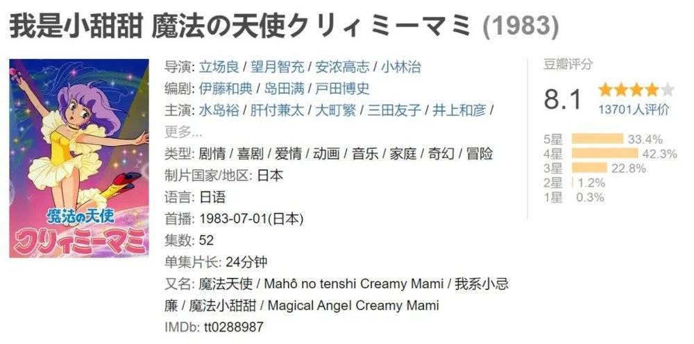 紧随其后,日本动画公司小丑社(Studio Pierrot)又制作了《我是小甜甜》,讲述年仅10岁的平凡女孩森泽优得到了神秘力量,可以用魔法变身成为偶像的故事。
