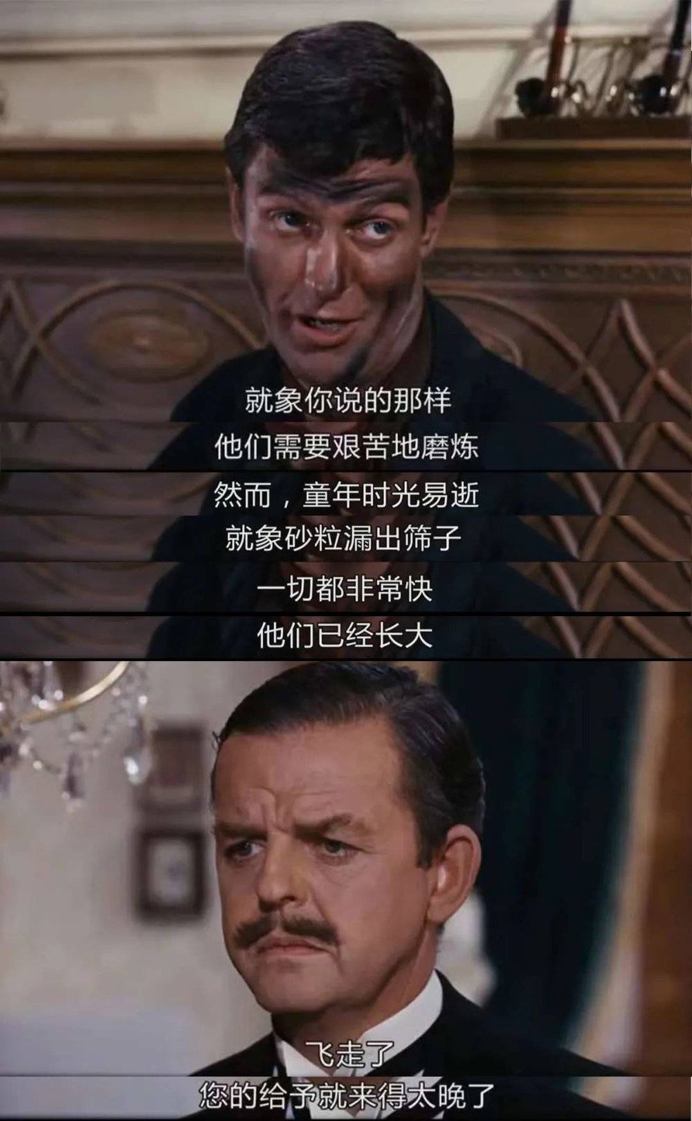 而电影则时间有限,故事需要取舍,冲突需要集中……这并不是特拉弗斯最初的创作目的。在终于同意了迪士尼的改编后,特拉弗斯坚持了对剧本的控制权。而最终版本的剧本,则将强化剧情冲突的任务,加到了班克斯先生——也就是孩子们的父亲身上。