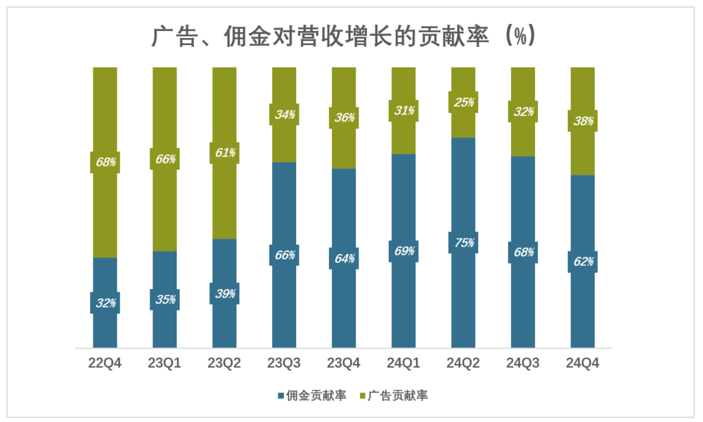 2022年,广告、佣金对营收增长的贡献率分别为63%、37%;