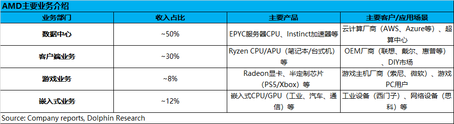 从数据中心业务的主要产品看,虽然公司的CPU产品在继续侵蚀英特尔的产品份额,但各大厂商在GPU产品方面,还是相对偏好英伟达的相关产品。对于公司的MI系列产品,客户更期待后续的MI350和MI400。