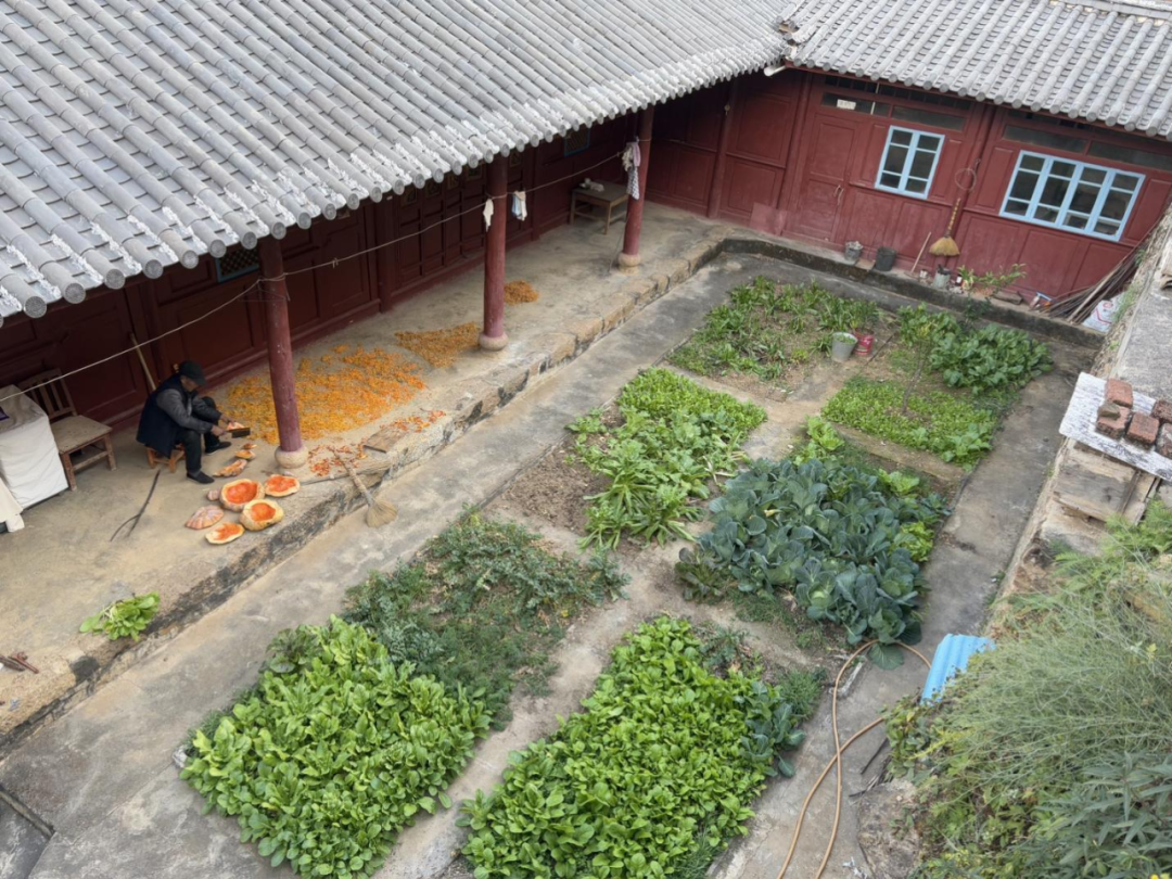 云南丽江玉龙县石头城村一老人家的庭院菜园。田秘林/摄