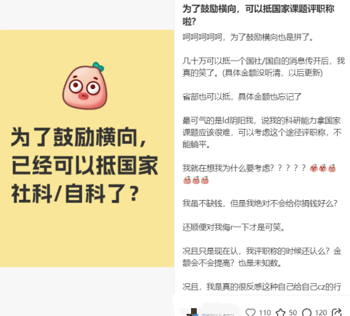 纵向不够,横向来凑。当国自然项目难以企及时,横向课题成了高校教师的“救命稻草”。如今还有一些高校出台新政策:横向项目,可替代国家级项目评职称。