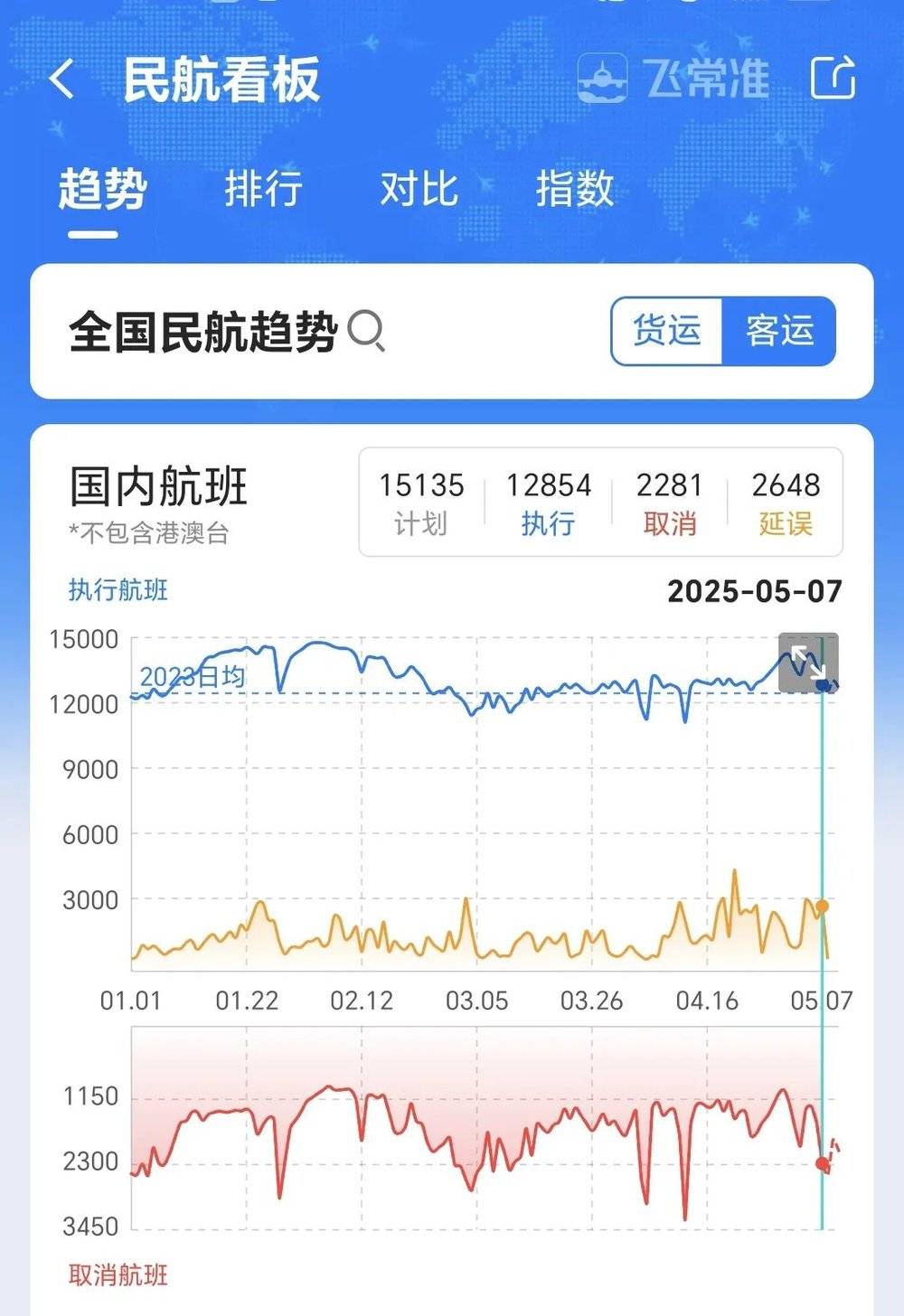 据@飞常准“民航看板”数据统计,昨日国内航班计划执行15135班,实际执行12854班,取消2281班,延误2648班。