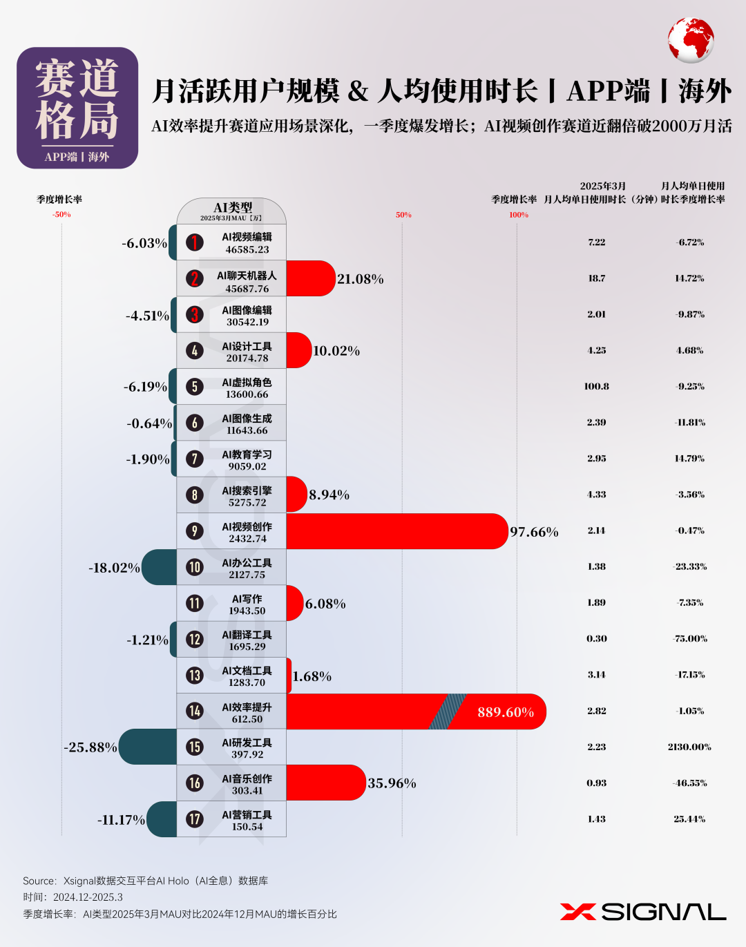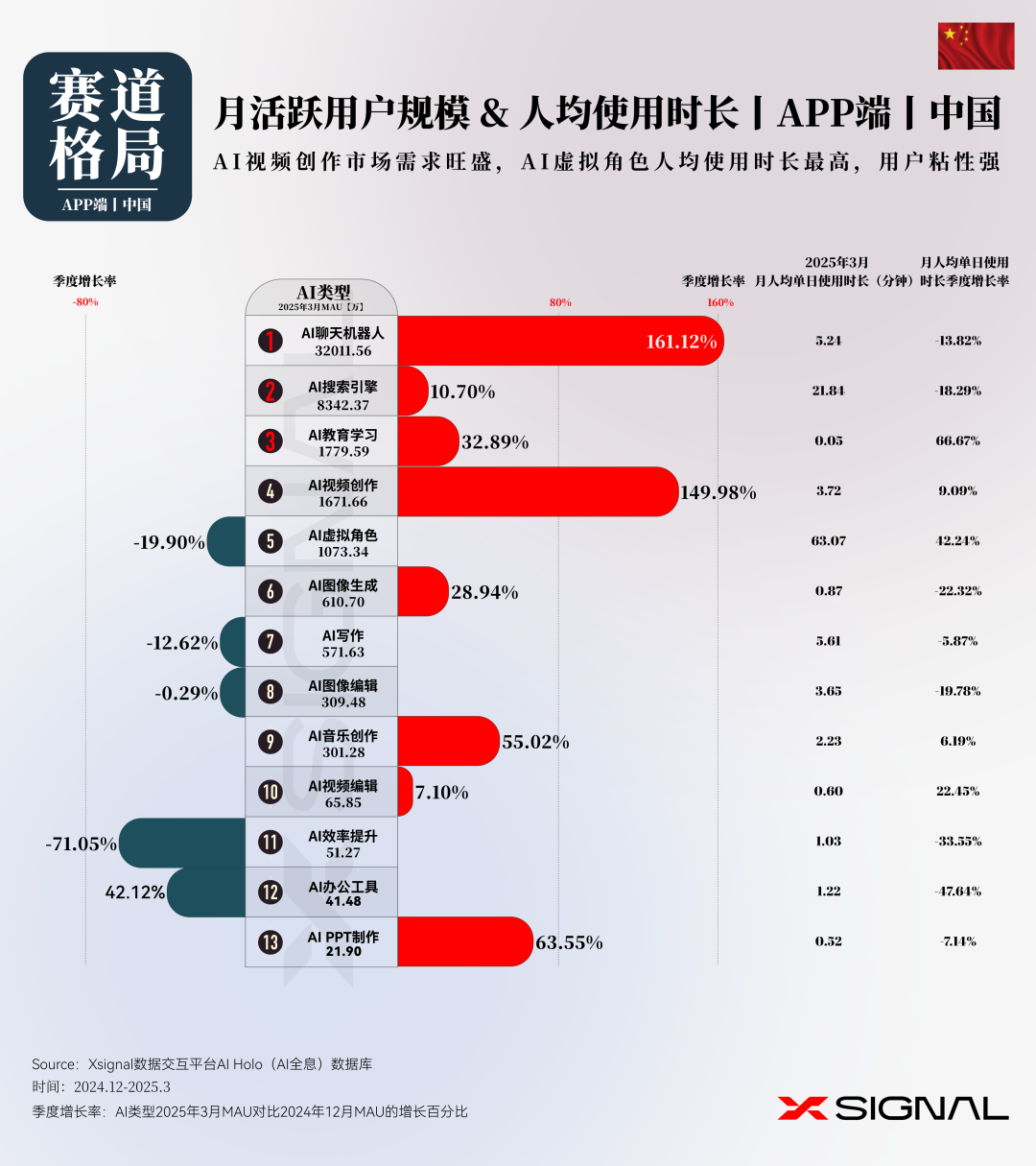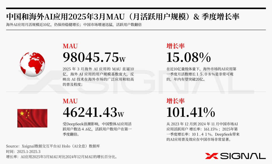 本文来自微信公众号:Xsignal AI&APP全息数据洞察,作者:X博士,原文标题:《季载录·春丨Xsignal 全球AI应用行业季度报告2025丨三万字完整版丨Xsignal深度文章》,题图来自:AI生成