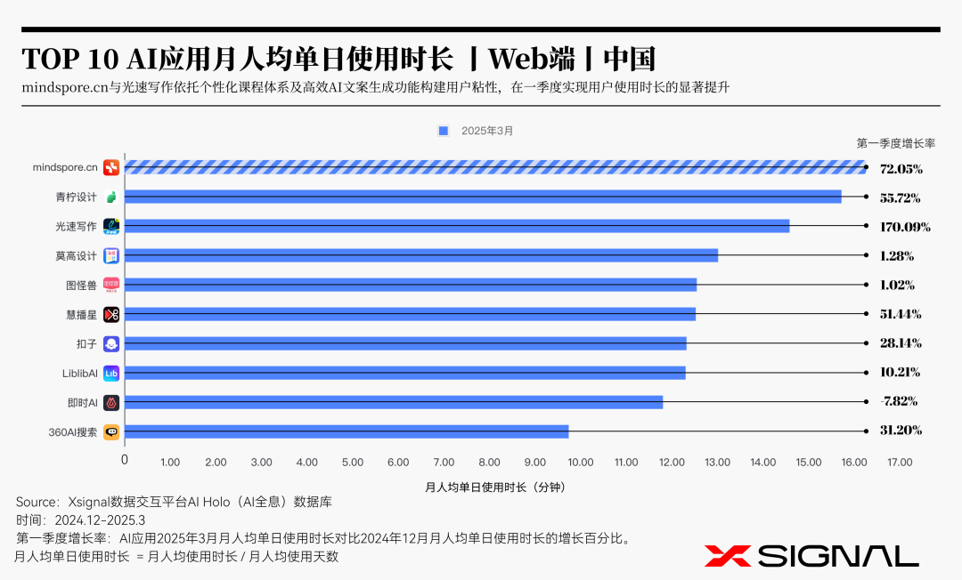 TOP 10 AI应用月人均单日使用时长 丨Web端丨中国