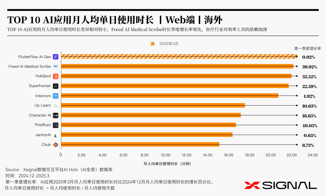 TOP 10 AI应用月人均单日使用时长 丨Web端丨海外