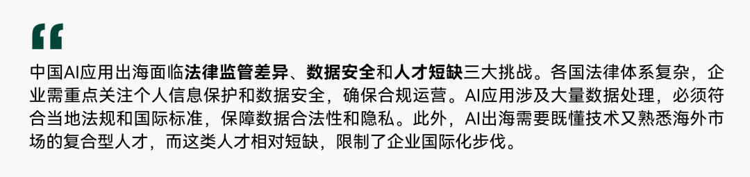 未来,随着 AI 技术与各行业融合加深,中国出海 AI 应用有望在更广阔的领域开疆拓土,同时也将面临全球化竞争格局重构带来的新挑战与新机遇。