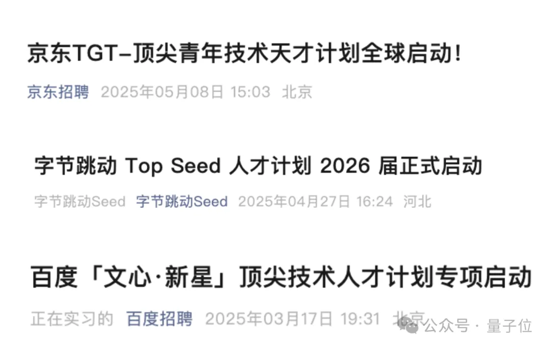 作为想要应聘的学生,要么在顶会期刊上发表过有影响力的论文,要么就是竞赛达人,主打一个优秀本秀,甚至字节的Top Seed计划仅面向博士生。