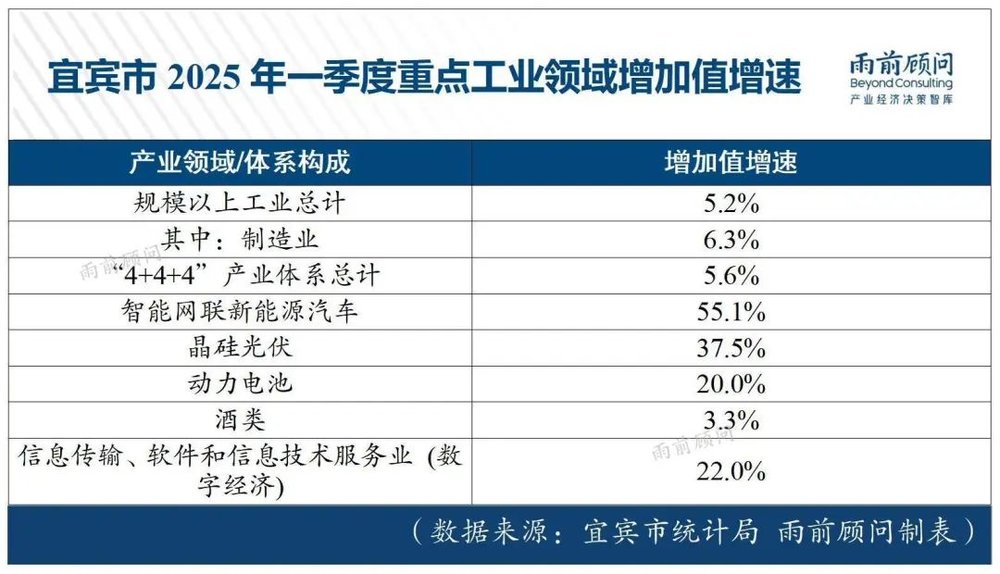 工业是首当其冲需要审视的领域。 2025年一季度,宜宾市规模以上工业增加值同比增长5.2%,不仅低于四川省7.2%的平均水平 ,也明显落后于绵阳市的11.7% 和德阳市的14.0% 。