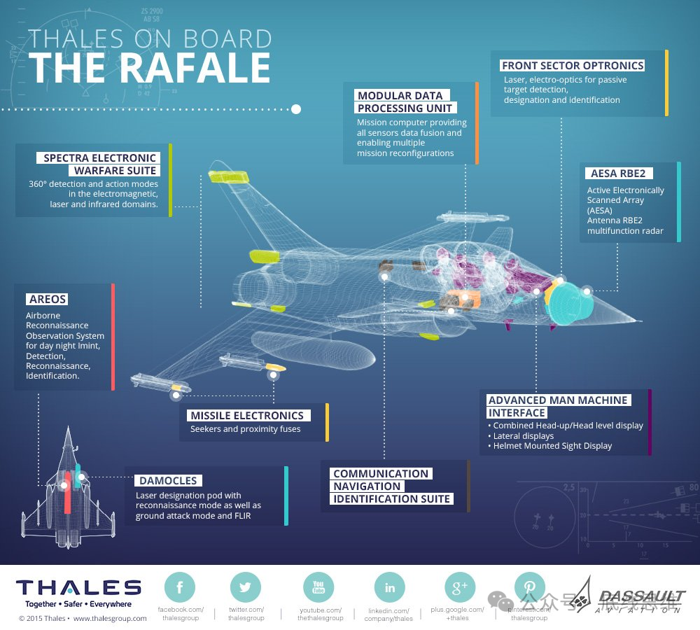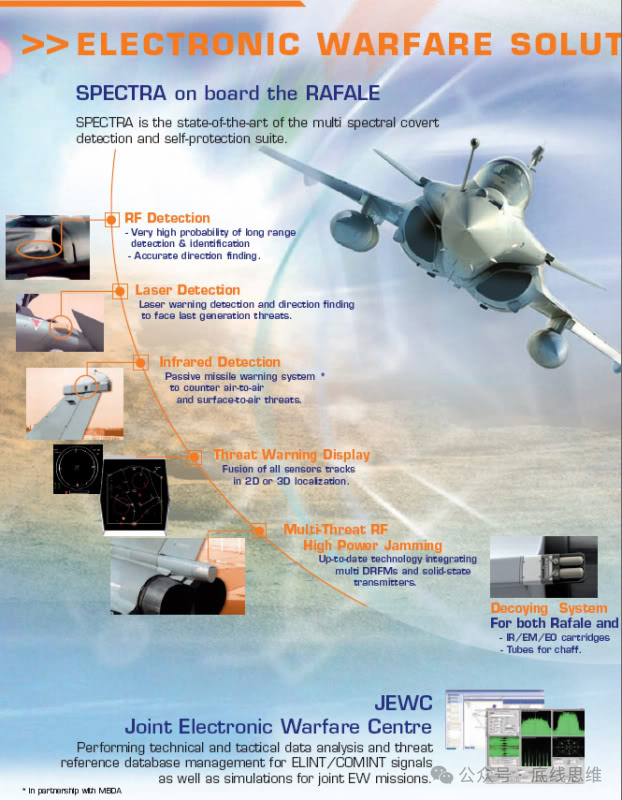 阵风有世界上最先进的空战自卫系统Spectra,号称可以360度无死角保护战机