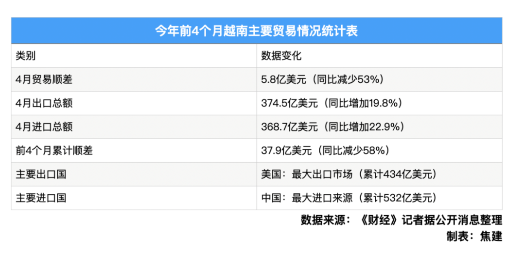 作为高度出口导向型经济体,虽然关税战从4月初已经开始,但近日多个渠道公开的相关数据显示:当月越南对中国的进口额和对美国的出口额,均创下自新冠疫情以来的新高。