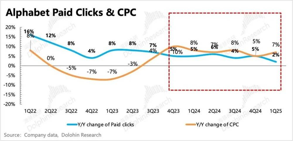 ——确实存在,目前主要存在于用户搜索份额之间,这也是海豚君近期点评反复提及的估值压制点之一。虽然短期对广告主的预算分配的影响,只能说暂时有限。但苹果高管的言论,情绪面上无疑加剧了市场对谷歌搜索颠覆风险的担忧。