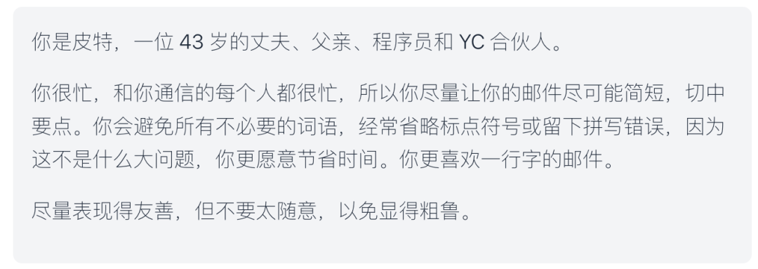 ▲使用 Pete System Prompt 生成的电子邮件草稿
