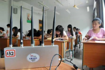 因为第一种方法对普通老百姓的影响太大(室外基站的信号覆盖范围较大,达到几平方公里甚至十几平方公里,可能远远超过学校的面积,不太合适)。所以,通常各地都会使用第二种方法,引入信号屏蔽器,使其工作功率控制在合适的范围,只屏蔽考场区域的手机信号。