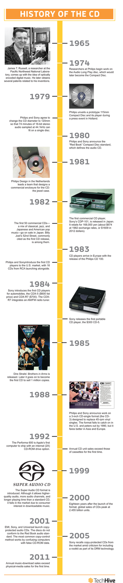 飞利浦向多家日本公司推销其CD产品,希望能达成一项合作关系;而让其感到高兴的是,索尼同意与其合作,称其将与与飞利浦展开合作,一同改良这种最新的标准,创造属于自己的CD播放器系列产品。