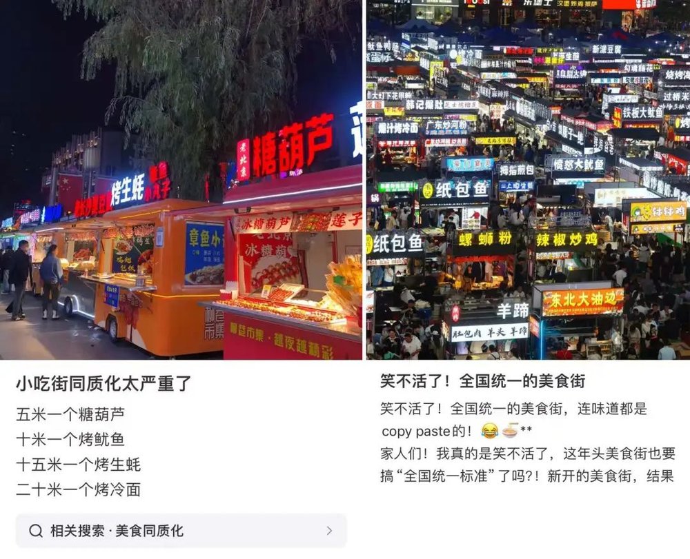 有网友调侃,以前夜市几乎人手一份“摆摊三件套”:烤肠、臭豆腐、奶茶。后来风格“洋气”了,又变成甜品、炸薯条和热狗。但无论怎么变,都是一个模子刻出来的,缺乏创意和差异化。