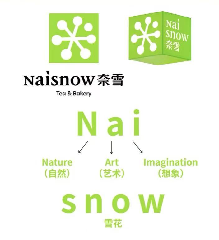 2025年5月,奈雪的茶借“十周年国际化战略升级”之机,更换了品牌LOGO,名称也从“奈雪的茶”简化为“奈雪”,英文标识从拼音“NAIXUE”改为混合风格的“Naìsnow”。这一新名称被官方解读为:“Naì”强化了中国基因与记忆点的同时,融合了“N自然、A艺术、I想象”三大品牌核心价值。“Snow”则呼应图形logo中的雪花,以纯净、轻盈的视觉联想,传递奈雪传达的自然健康理念。