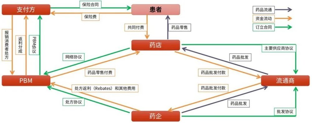 以PBM这一环节为例,根据美国药剂师协会的说法,“PBM主要负责的是处方集的开发和维护,与药房签约、与药厂议定折扣和回扣,以及为处方药的理赔作处理和支付”。由于美国政府不得直接与药企进行议价,即使是Medicare(面向老年人和残疾人的美国联邦医疗保险计划)也需通过PBM与药企议价。