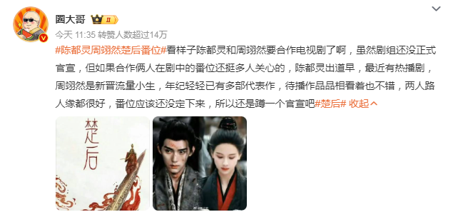 这两日起点小说《楚后》影视化的演员番位争议也正在于此,女主选角陈都灵的消息流出后,再传出男主选角周翊然,此时周翊然粉丝维权要求“平番”。