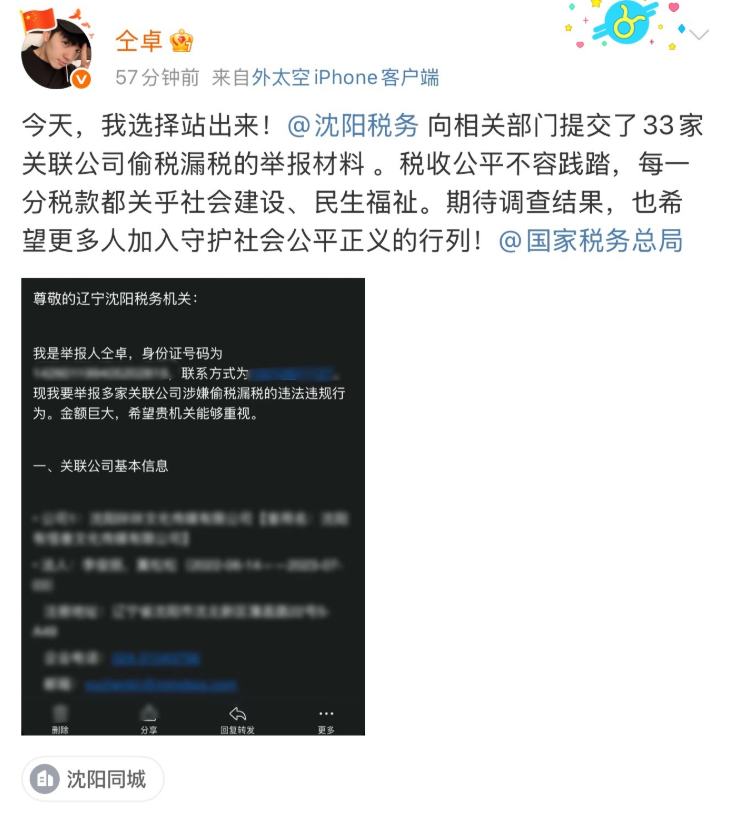 2023年4月,仝卓在微博实名举报33家企业涉嫌税务问题,涉及多家影视公司、经纪机构与演艺相关服务单位。这一动作引发了连锁反应:部分公司进入税务核查程序,北京文化商会启动税务培训,278家文娱类企业签署自律公约。举报,在某种意义上成为一种“引爆机制”,它既能触发审查程序,也能搅动行业神经。