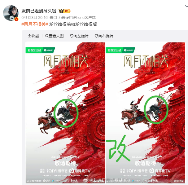 其他比较常见的则是年年撕、年年有的番位问题:《楚后》刚刚传出选角,男女主角番位之争便登上热搜。剧未官宣、未拍摄,评论区却早已打响舆论战,粉丝维权、控评、抵制如流程般展开。甚至连剧本走向和剪辑节奏,也在“高光”与“主角感”的角力中被迫调整。