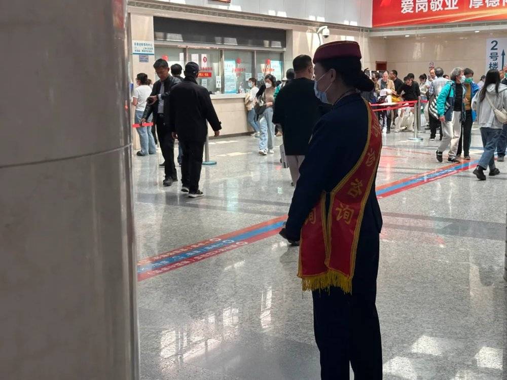 在医院里,最忙碌的一群人是站在各个角落、肩披红色绶带的导诊员。人群来来往往的一楼大厅里,几乎每隔10秒钟,就会有人来到导诊员刘姐的面前。