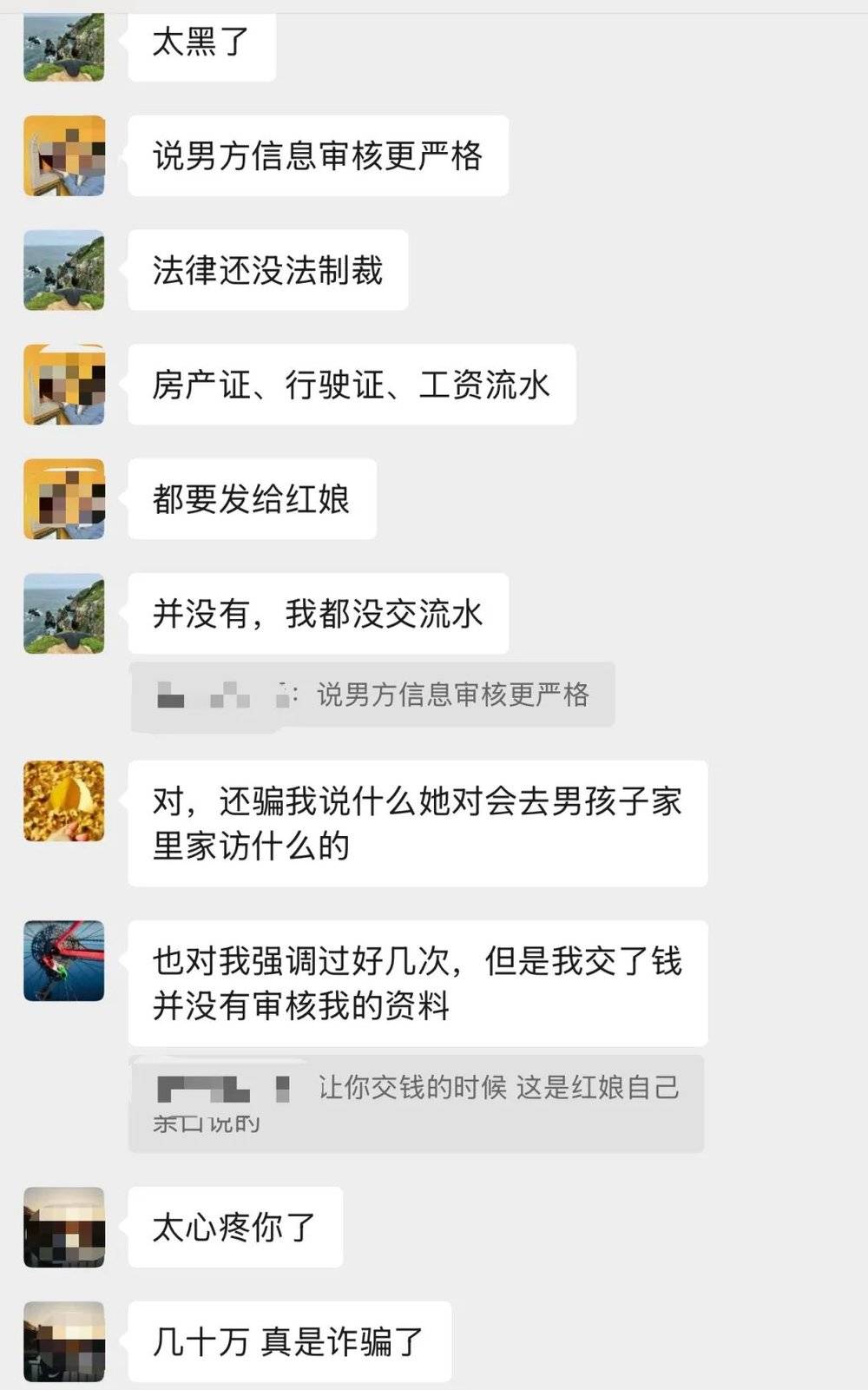 在一个“婚介机构诈骗维权群”里,群主表示被骗的女生会比男生多,且金额更大。