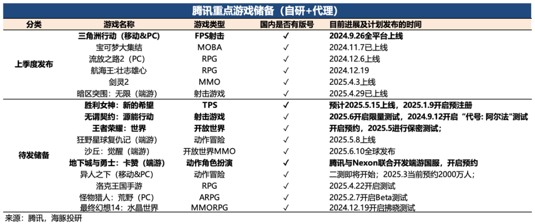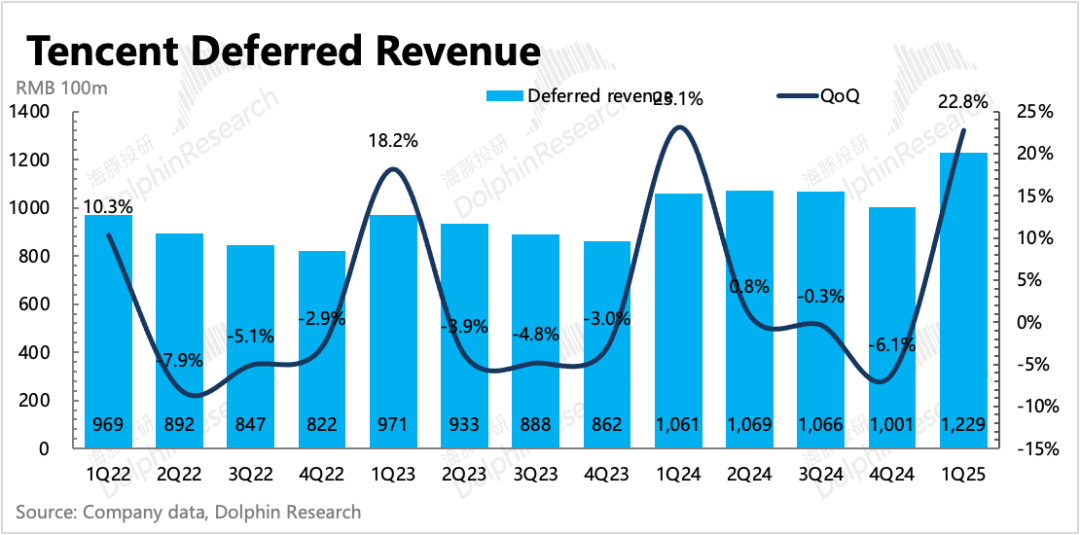 从递延收入看,环比增速高于往年正常水平,有望继续给到Q2一定支撑。但Q2开始,不可避免将面临《DNF手游》的高基数影响。从现有的Pipeline来看,以《王者荣耀世界》为首的重磅储备不少,虽然大多都已经拿到版号,但距离定档上线可能还有一些时间差,还不确定能否今年可以上线。