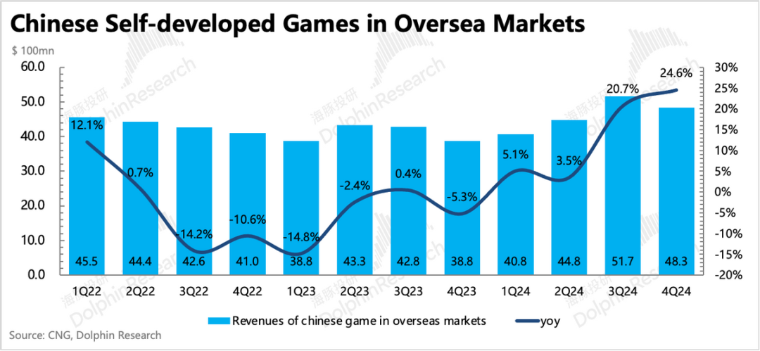 由于都是体量庞大的老游戏带动,因此腾讯的高增长对行业也有很明显的支撑,使得一季度无论是本土还是出海,市场都跟随腾讯步伐继续回暖。